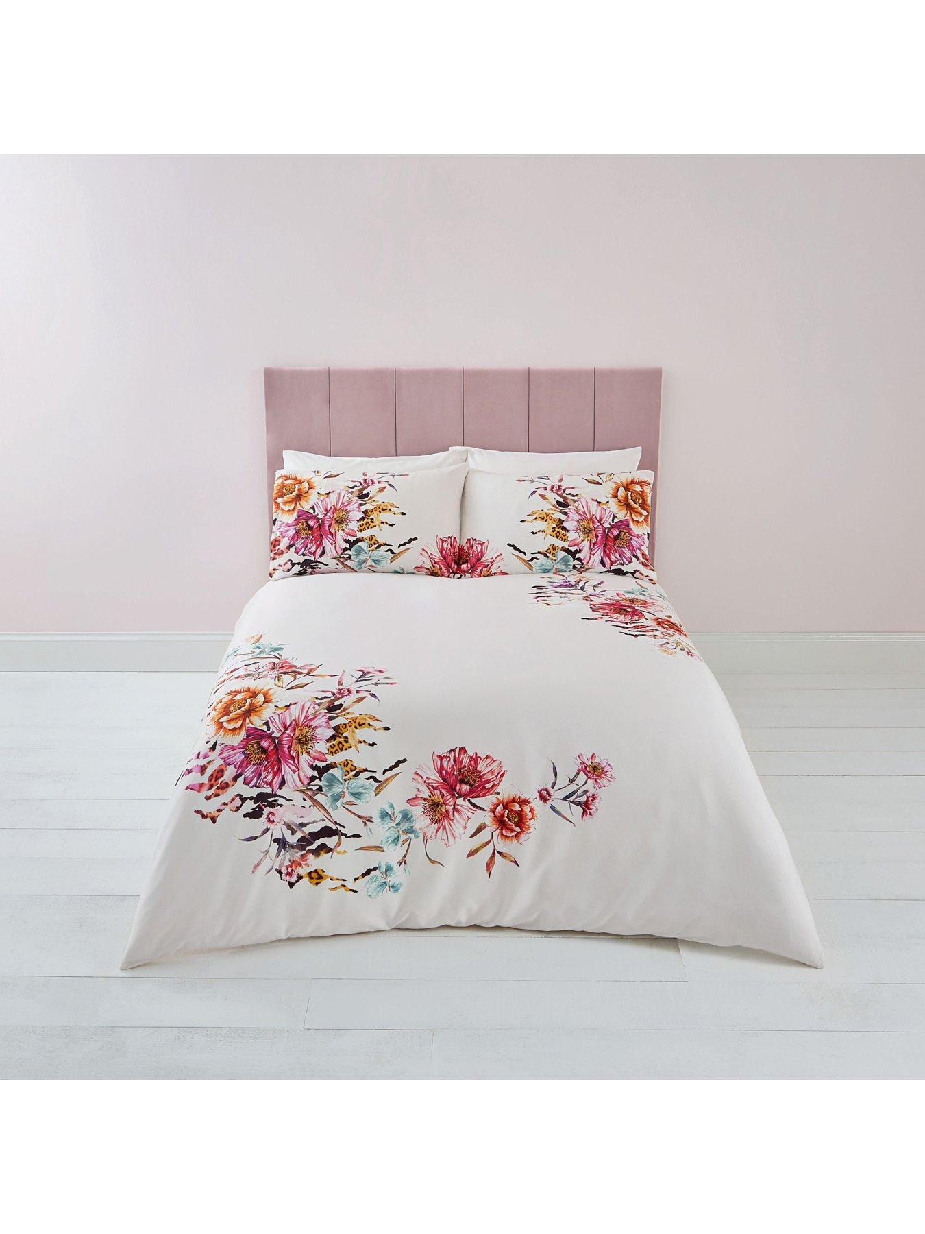 Everdean Floral White Super King Size Duvet Cover Set Luxury