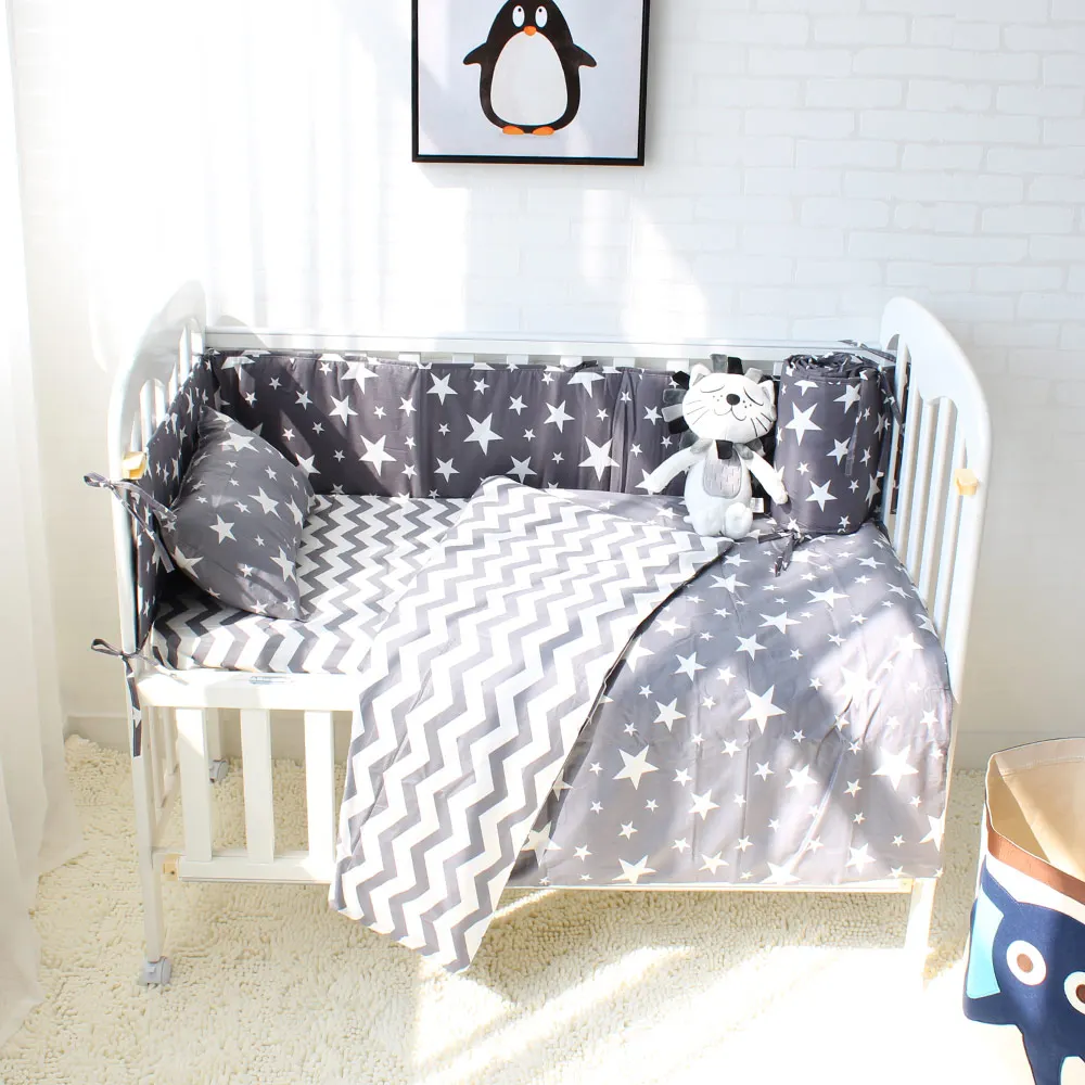 3 To 7pcs Cotton Baby Bedding Set Grey Star Pattern Baby Bed Linen